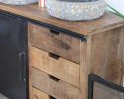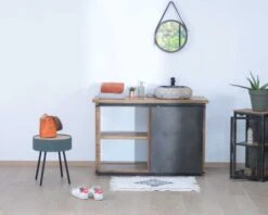 Que serait une salle de bains sans un meuble de caractère ? Haut de 85 cm, ce meuble proposé par Meuble House vous permettra de ranger brosses à dents, serviettes et tout le nécessaire de beauté. Mélangeant le bois de manguier et l’acier, ce meuble n’est pas comme les autres… Il vous permet de ranger tous vos effets personnels tout en se fondant dans la salle de bains. S’étendant sur 120 cm, il est suffisamment long pour accueillir une vasque voire deux.