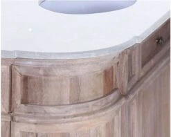 Le jeu de contraste entre le coloris aux accents miel du meuble et son plateau en pierre blanche lui donne un charme intemporel. Bien entretenus les meubles en bois s’embellissent avec le temps. La qualité des matériaux utilisés pour la fabrication de ce meuble vous garantit une grande longévité. Si vous voulez agrandir l’espace de votre salle de bain, n’hésitez pas à investir dans les accessoires : faites l’acquisition d’un grand miroir qui viendra habiller votre meuble. Avec une dimension de 120 cm de longueur, 56 cm de largeur et 90 cm de hauteur, ce meuble est l’achat idéal pour ceux qui souhaitent allier style et praticité. Il est à noter que la robinetterie n’est pas comprise.