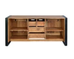 Votre espace bien-être s’imprègne d’une atmosphère des plus agréables avec ce superbe élément de la gamme « Montréal ». Conçu avec soin en bois naturel massif et en métal noir, ce meuble prévu pour deux vasques, exhibera toute sa richesse chromatique dans votre salle de bain. Profitez lors de chaque passage dans votre pièce d’une aura bienveillante et subtilement exotique qui sera vous détendre et vous relaxer à merveille.