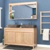 Nous vous recommandons d’opter pour un dépoussiérage à l’aide d’une microfibre légèrement humide et de toujours éviter les produits chimiques pour nettoyer vos meubles. Au quotidien, séchez à l’aide d’un chiffon doux le plateau de votre meuble pour en prendre soin. L’application d’une cire incolore une à deux fois par an sur le bois peut être envisagée pour prolonger la beauté de votre meuble d’eau.