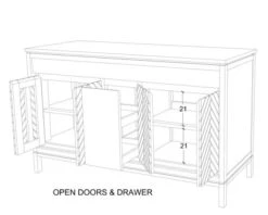 Les placards latéraux sont fermés par des demi-portes, créant un effet intimiste pour transformer votre salle de bain en un cocon de bien-être. A l’heure de prendre soin de vous, vous retrouverez soigneusement ordonnés votre linge de toilette et vos accessoires, disposés dans les compartiments séparés par une étagère fixe ou dans d’élégantes boîtes en bois ou en rotin tressé. Vos petits accessoires et produits cosmétiques du quotidien trouveront une place dans le spacieux tiroir coulissant central dont les deux niveaux procurent une ergonomie et un confort parfaits.