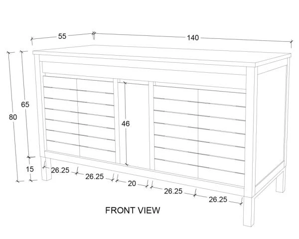 Longueur : 140 cm ; Profondeur : 55 cm ; Hauteur : 80 cm