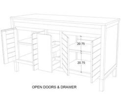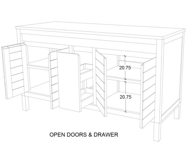 Beau mais également très pratique, votre meuble dispose d’un tiroir central à deux niveaux, pour ordonner entre les larges rebords les produits cosmétiques et les accessoires du quotidien, le tout parfaitement accessible ; parce que prendre soin de soi n’attend pas. Imprimant à l’atmosphère de votre cocon une énergie suave rappelant le style scandinave, les demi-portes à l’aspect lambrissé abritent deux vastes placards latéraux munis d’une étagère fixe, pour une organisation parfaite, gage de sérénité.