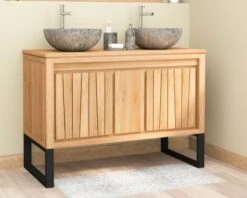 Apporter la touche finale à votre salle de bain en associant votre meuble sous vasque en teck avec une décoration aux couleurs naturelles et aux matières variées et profitez d’une ambiance douce et sereine pour prendre soin de vous et vous ressourcer.