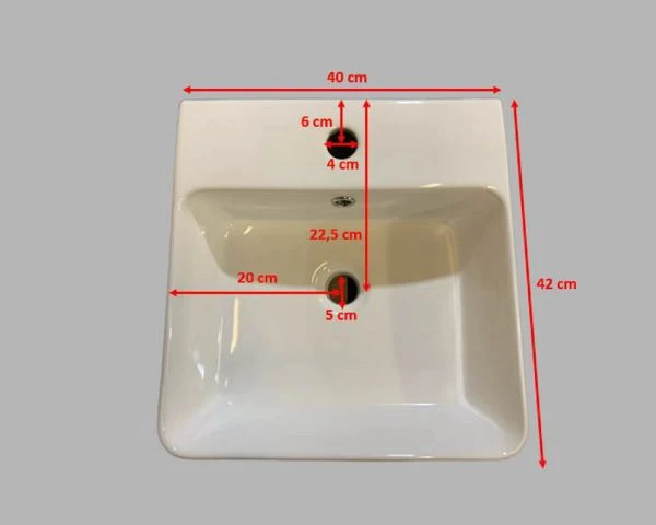 Longueur : 80 cm ; Profondeur : 56 cm ; Hauteur (hors vasque) : 78 cm