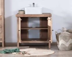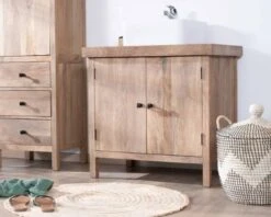 Dans l’intimité de votre salle de bain, faites de chaque moment une invitation au bien-être avec le meuble sous vasque en manguier massif de 80 cm de la collection « Maestro ».
