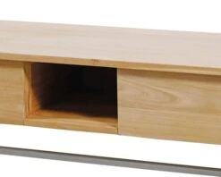 D’une largeur de 140 cm, ce meuble est conçu pour accueillir deux vasques dans un style épuré propice à la déconnexion. Sa simplicité n’en oublie pas pour autant les aspects fonctionnels grâce au porte-serviette en métal élégamment intégré à votre meuble pour avoir toujours facilement à portée de main votre serviette de toilette et éviter ainsi les salissures des projections d’eau. Cet élément pratique vient souligner les lignes pures de ce long meuble en teck massif, apportant ainsi une touche de modernité et de dynamisme à l’ensemble. Cette association harmonieuse jouant sur le contraste entre le métal et la chaleur du bois exotique donne à votre meuble de salle de bain double sa personnalité unique.