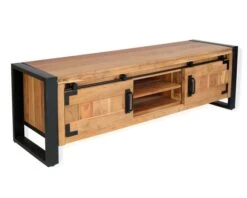 Que votre séjour soit décoré dans un esprit rustique chic ou manufacture, que votre déco soit marquée ou plus épurée, la collection « Montréal » vous séduira par son judicieux duo de matériaux. Le bois d’acacia massif et le métal noir s’unissent pour un rendu fabuleux. Dans votre home sweet home, votre banc télé au look factory recevra avec magnificence votre écran tout en vous faisant bénéficier d’une pièce de vie plaisante et organisée.