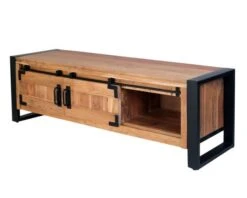 Que votre séjour soit décoré dans un esprit rustique chic ou manufacture, que votre déco soit marquée ou plus épurée, la collection « Montréal » vous séduira par son judicieux duo de matériaux. Le bois d’acacia massif et le métal noir s’unissent pour un rendu fabuleux. Dans votre home sweet home, votre banc télé au look factory recevra avec magnificence votre écran tout en vous faisant bénéficier d’une pièce de vie plaisante et organisée.