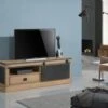 Fonctionnel, ce meuble de télévision aux dimensions confortables (L.160 X H.55 X P. 45 cm), optimise la surface murale autour de l’écran et dispose d’espaces de rangement pour accueillir vos équipements.