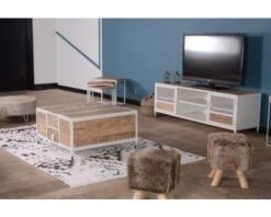 Esthétique et pratique, ce modèle reprend les codes du style industriel pour l’adapter à vos besoins avec des possibilités de rangement pour votre équipement Hifi et vidéo.