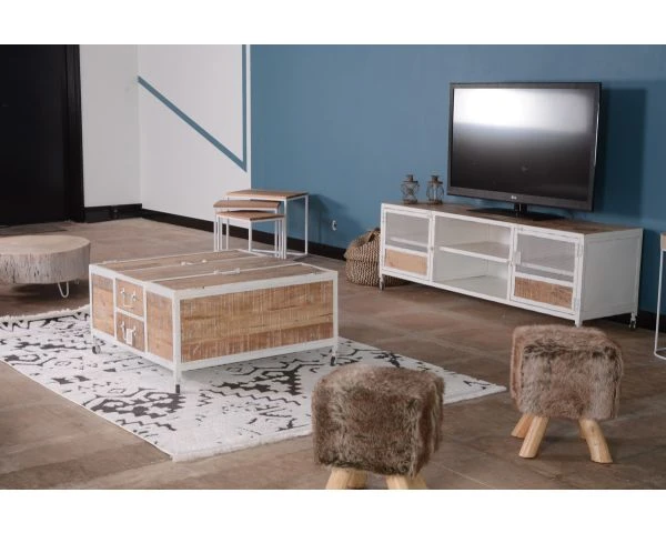 Métal blanc et bois de manguier blanchi finition récup