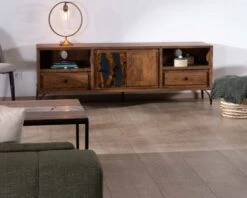 Dans un salon à la décoration ethnique ou très naturelle, cohabitant avec de fastueuses plantes vertes et de vieilles lampes à huile, ce meuble TV trouvera une place sereine et lumineuse, imposant une ambiance chaleureuse et raffinée.