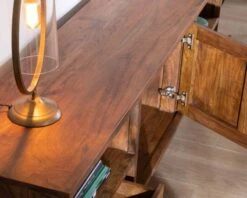 Elément phare de la plupart des salons contemporains, le meuble TV est l’objet de convergence de tous les regards à l’heure de votre film et partie intégrante de votre décoration le reste du temps. Apportant un climat propice à l’évasion, le meuble télé en acacia huilé « Membatu » vous propose un voyage des sens et à travers les années.