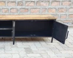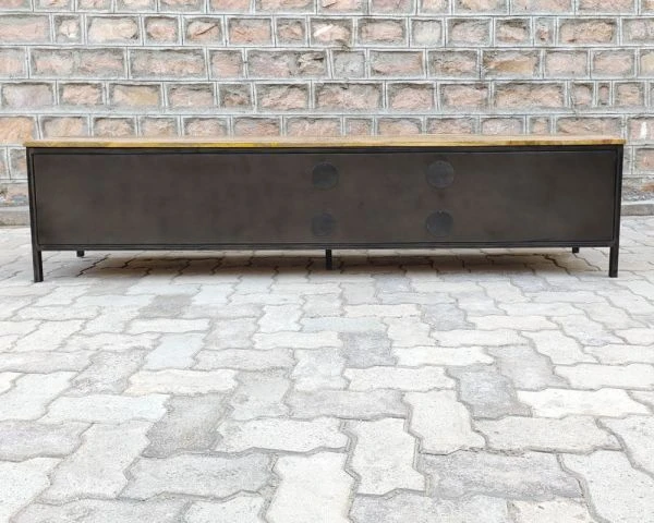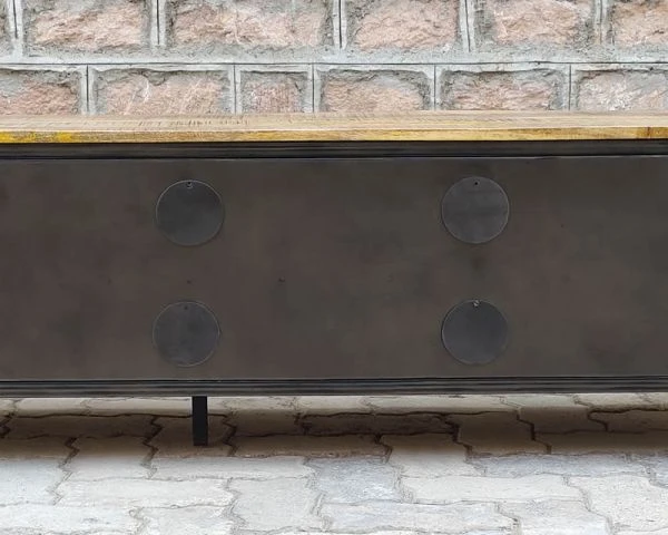 Grâce à sa conception de très bonne facture, votre banc télé se veut d’aplomb et vigoureux. Par ailleurs il repose sur 5 pieds pour gagner encore plus en stabilité. Pas mal non ? Il a été fabriqué à partir de matériaux de qualité dans l’optique de vous assurer un usage durable au fil du temps qui passe. Sa robustesse, ses finitions ainsi que son plateau en manguier massif transporteront indubitablement votre séjour dans un univers de type atelier. Le métal a volontairement été usiné de manière à donner un aspect « vieilli » au métal et à laisser perceptibles les reliefs de la matière et certaines soudures pour accentuer le caractère indus’ du mobilier.