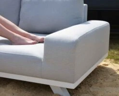 Spacieux, confortable et stylé, ce canapé d’angle d’extérieur possède tous les atouts pour vous séduire. Avec ses couleurs gris clair et blanc et son aspect intemporel, ce salon de jardin en tissu et aluminium est parfait pour les moment farniente au jardin ou près d’une piscine. En effet, son tissu imperméable conviendra parfaitement à une utilisation outdoor. Facile à entretenir, le tissu Sunbrella® est résistant à l’eau mais aussi aux UV et à la décoloration. Le tissu français Sunbrella® est un revêtement respirant empêchant la condensation et qui ne peut donc pas faire l’objet de moisissure. Il sèche de façon rapide et il est facile à entretenir.
