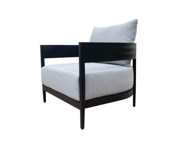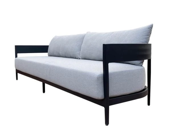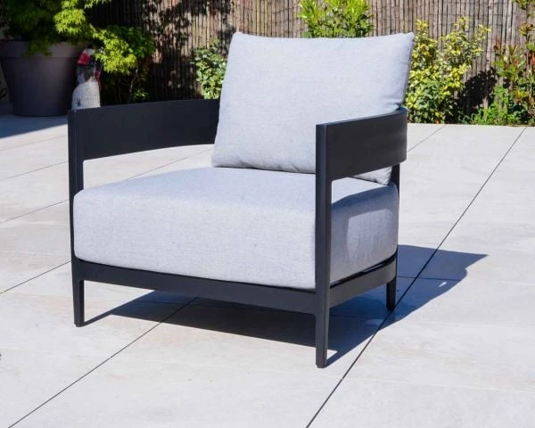 Tissu hydrofuge, garnissage mousse antimicrobienne haute densité, structure et pieds en aluminium anthracite anti-rouille et anti-UV