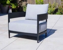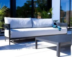 Pour profiter d’un salon extérieur stylé, le design de la gamme « Blois » vous séduira à coup sûr. On craque pour la structure du canapé et des deux fauteuils en aluminium anthracite et pour les coussins gris clair. Le rendu des matériaux tout comme leurs performances techniques sont le reflet de leur personnalité pleine de charme et de caractère.