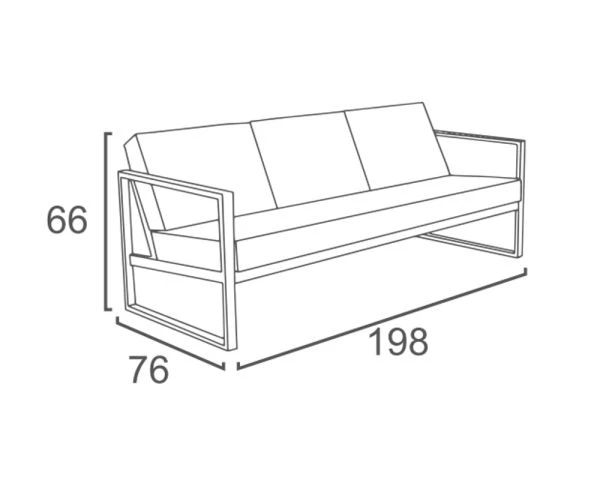 Votre canapé possède des dimensions de 198 cm de large, 76 cm de profondeur et 66 cm de hauteur. Vous pourrez aisément vous y détendre à 3 ou 4 personnes. Avec vos deux fauteuils, vous aurez un bel ensemble d’extérieur de 6 places.