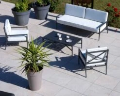 Avec le salon 1 canapé 2 fauteuils « Chambord », vous êtes installé de manière aussi classe que confortable sur votre terrasse. A l’ombre des cyprès ou dans votre roseraie, vous bénéficierez de l’expertise des designers qui ont pensé ce mobilier de jardin aussi beau que durable.