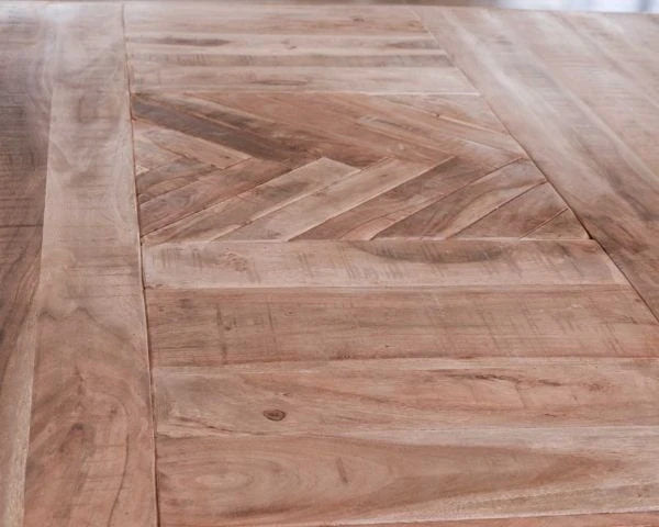 Avec son bois d’acacia massif nuancé et avec son motif chevron délicat, votre table se révélera tel un écrin. Votre service en grès sera mis en valeur et votre décoration de table pourra jouer la carte de la simplicité. Une belle branche d’eucalyptus déposé dans un vase en verre soufflé grisé ou quelques fleurs disposées dans des soliflores seront la petite touche naturelle tout en douceur qu’il vous faut pour finaliser votre ambiance.