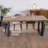 Quelle joie de dresser le couvert sur un meuble aussi singulier qui mélange à la perfection des matériaux assurément opposés mais qui s’unissent ici de manière optimale. On admire les deux bandes en acacia massif qui respectent les courbes naturelles du tronc de l’arbre sur lesquelles elles ont été prélevées. On est fan de la large bande en verre trempé qui modernise l’aspect général du plateau. On adore la forme graphique et tendance des pieds en métal noir à la section de 6×6 cm qui assure l’équilibre parfait de cette table généreuse de 280 cm de long. A coup sûr, ce meuble de repas ne manquera pas de provoquer l’enthousiasme de vos invités et vos plats et autres gourmandises seront à l’honneur, bien disposés sur votre plus beau service en porcelaine ou en grès.
