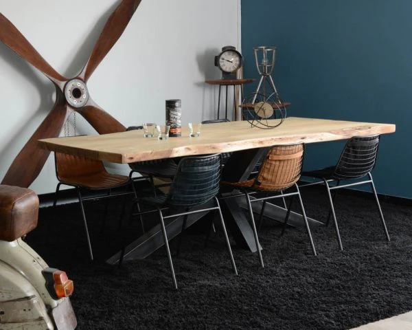 Avec son piétement en métal noir de style mikado, votre grande table de cuisine s’enjolive de finitions originales et tendances. Les jambes de vos 8 à 10 invités ne seront aucunement bloquées par ces pieds croisés si magistraux. Installée au milieu d’un épais tapis lin ou de couleur, votre table s’harmonisera habilement à votre décoration. Vos serviettes et votre vaisselle seront disposées sur un véritable écrin et vos repas entre amis ou en famille seront juste merveilleux.