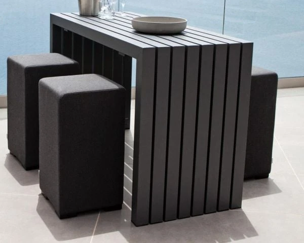 Avec une allure singulière et contemporaine ainsi qu’une structure design en aluminium noir, votre bar extérieur affirmera votre goût confirmé pour l’ameublement outdoor de caractère et de très belle fabrication. Il saura faire preuve d’élégance et de style dans votre jardin et il vous permettra de recevoir vos amis avec plaisir. Sobre tout en étant singulière, la table haute d’extérieur « Java Island » se veut aussi à la fois exceptionnelle et ergonomique.
