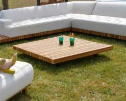 Avec ses pieds en aluminium noir et son bois précieux et imputrescible elle est très résistante. Vous pourrez la laisser dehors sans problème. Sa couleur riche et le veinage de son bois donneront un côté chaleureux à votre terrasse. Avec le temps, votre table peut se patiner et devenir légèrement grisée surtout si elle est exposée au soleil. Votre meuble possède alors sa propre histoire, sa propre authenticité. L’extérieur devient une vraie pièce de vie et votre nouvelle table de salon outdoor fera sensation auprès de vos proches. Elle possède aussi un côté ethnique chic, on se croirait sur une plage d’Asie… Le bruit des vagues en plus, ça y est, vous êtes en vacances !