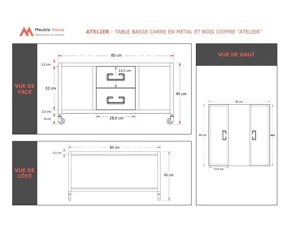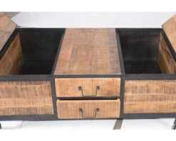 Mais ce n’est pas tout, car en plus d’être une pièce maîtresse pour n’importe quel agencement aux intentions un brin factory, votre nouveau meuble indus’ dispose d’une qualité supplémentaire qui le rend encore plus indispensable : il est extrêmement pratique ! En effet, en atteste ses deux plateaux à la surface de la table qui s’ouvrent pour dévoiler deux grands coffres de rangement à même d’accueillir gâteaux apéritifs, vaisselles d’appoint ou magazines et jeux de société.
