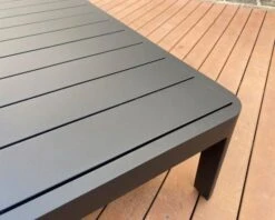 La table rectangulaire en aluminium anthracite « Blois » vous fait profiter de ses dimensions généreuses et de son design moderne sans fioritures. Conçue avec soin dans un matériau durable et prévu pour un usage outdoor, cette table basse est juste superbe. On adore son plateau style « lattes » et ses bords arrondis. Dans la même lignée, le piétement suit le mouvement et assure la stabilité du meuble. Sous chaque pied, on retrouve d’ailleurs des patins qui protègent le sol de votre terrasse ou de votre balcon.