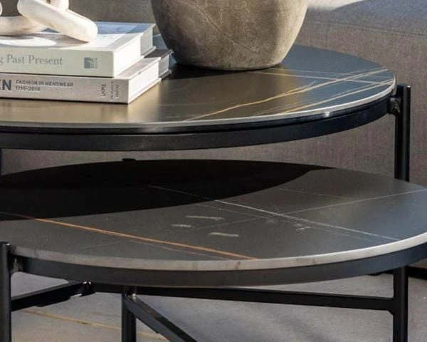 Pour une décoration plus sophistiquée, vous pouvez associer cette table basse avec sa petite sœur, au plateau noir ou blanc, ce qui amplifiera le jeu des perspectives tout en formant un ensemble cohérent, harmonieux et dynamique.