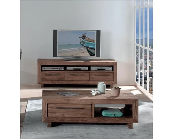 Table basse avec 2 tiroirs et 1 niche.