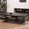 Le plateau est supporté par une structure en métal noir aux lignes sobres et minimalistes qui apporte un esprit moderne et léger à l’allure générale de ce meuble de salon.