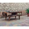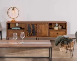 Le design de cette table basse en bois huilé, résine grise et métal noir, bien que profondément enraciné dans le style ethnique, trouvera ainsi harmonieusement sa place dans des décors plus contemporains, proposant un équilibre élégant entre authenticité et sophistication.