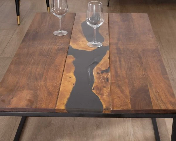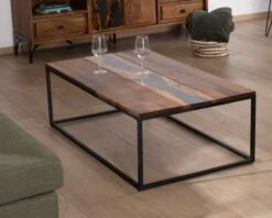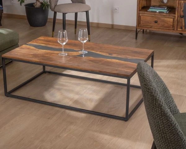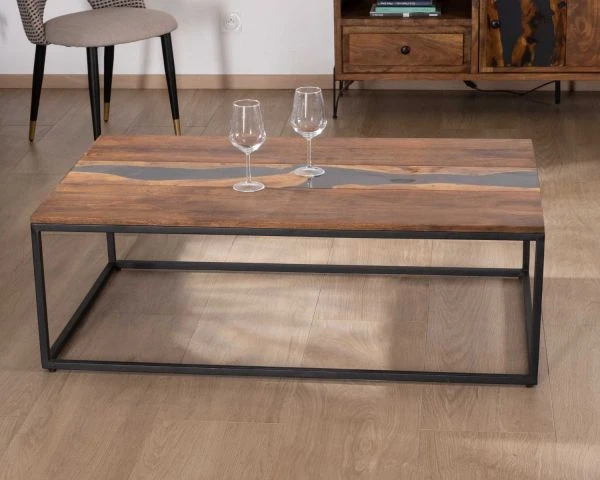 Au cœur de votre lieu de convivialité, installez une atmosphère envoûtante qui subjuguera vos invités avec la table de salon rectangulaire en acacia, résine et métal de la collection « Membatu ».