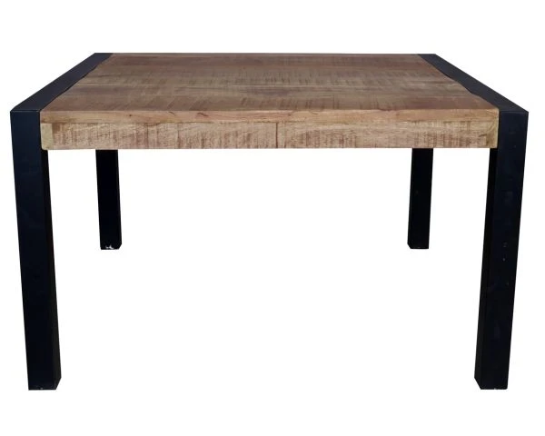 Avec ses 130 centimètres de côté, cette table à manger de style factory vous permettra d’accueillir jusqu’à 8 personnes. Simple et particulièrement conviviale, elle vous séduira par sa forme carrée, parfaite pour organiser des déjeuners et dîners en famille ou entre amis, sans laisser personne de côté. Praticité et décontraction sont en au rendez-vous. Avec son plateau épais en manguier massif associé à ses pieds métalliques, votre table à manger est parfaitement stable et résistante dans le temps. Ces deux matériaux robustes et nobles représentent un véritable gage de caractère pour cette table fonctionnelle et ornementale.