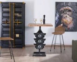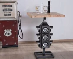 A l’intersection de l’originalité et du design, où le style industriel croise les matières avec harmonie, se tient la table haute « Crazy » à l’atypique pied feux de signalisation.