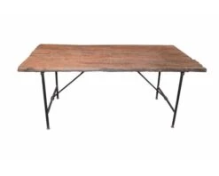 Fabriquée à partir de matériaux recyclés, la table « Népalaise » adopte un style industriel brut avec toutefois une touche de finesse et d’originalité. Le plateau de bois massif portant des marques d’usure dévoile un aspect rustique at authentique qu’on adore. La finition rudimentaire et très sobre laisse paraître néanmoins tout le charme du bois. Le plateau est soigneusement fixé sur des pieds en métal, également réalisés dans un style brut. Ainsi la finition du piétement métal crée avec le plateau de bois un contraste des plus esthétiques. Les amateurs du style factory/recyclé apprécieront cette table de repas rectangulaire qui apporte une touche d’originalité et de caractère à la salle à manger. Fabriquée selon une éthique respectueuse de l’environnement, dans le souci de ne pas exploiter de ressources naturelles lorsque le recyclage suffit amplement, cette table répond aussi aux exigences écologiques actuelles.