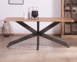 Le plateau de bois de 3 cm d’épaisseur et les pieds de type étoile assurent un aplomb et une solidité sans fausse note. La couleur miel du bois ponctuée de délicates et fines stries brunes se conjugue harmonieusement au métal noir pour un combo gagnant. Matière naturelle et matériau manufacturé s’assemblent avec grâce et élégance pour s’harmoniser avec de nombreux types d’intérieurs. Vous pourrez contempler le veinage organique et subtil et de cette essence d’arbre tropical sans être nullement déçus. La beauté de la nature authentique et pure se retrouve sur votre nouveau meuble de cuisine ou de salle à manger.