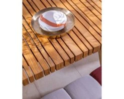 Robuste, chic et durable, votre mobilier de jardin a une apparence authentique. Sa délicatesse ne fait que mettre encore plus en valeur ses lignes épurées et sobres. Le teck donne un côté éclatant au mobilier et vous donne envie de voyager. Il possède des pigmentations naturelles allant du miel à l’orangé. Le bois de teck est également imputrescible et réputé pour sa tenue aux intempéries grâce à l’huile qu’il contient et ce de manière totalement naturelle. Comme tous les bois exotiques, il peut prendre des teintes grisées avec le temps particulièrement s’il est laissé en plein soleil. Pour le protéger et le nourrir, nous vous conseillons de lui appliquer un produit végétal spécifique.