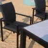 Attaché par des encoches en métal subtiles et élégantes, le piétement de la table ne gêne pas le passage de jambes. Idéal pour recevoir entre 6 à 8 personnes, votre meuble est léger et très facile d’entretien. Vous pourrez aisément bouger votre table outdoor près de votre piscine ou à l’ombre d’un grand arbre…