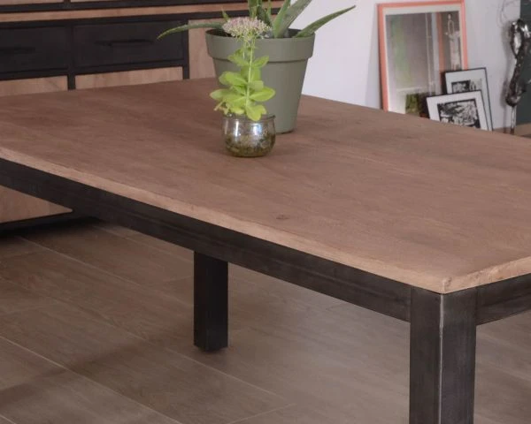 Conçu en manguier aspect teck, le plateau de 2,5 cm d’épaisseur permet de mettre en valeur votre vaisselle et vos serviettes en tissu. Le manguier avec sa couleur chaude n’a pas son pareil pour révéler l’aspect factory du métal. Travaillé ici de manière artisanale et laissant volontairement ressortir le travail de soudure, le métal est solide, durable. Il porte sans peine le long plateau de bois de 190 x 95 cm pour un effet « WAOUH » digne de ce nom. Son look manufacture réhaussera à merveille une pièce de vie contemporaine ou s’harmonisera à un intérieur de style loft avec des briques et un sol en béton ponctué de tapis superposés.