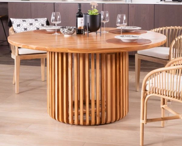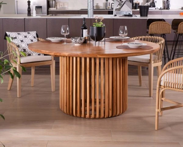 Cultivez l’art de recevoir avec sophistication grâce au charme et à l’originalité de cette table en teck ronde de 150 cm.