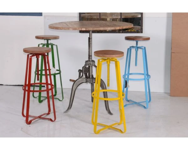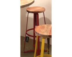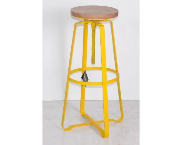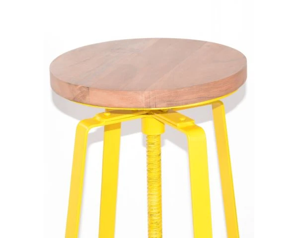 Le tabouret à vis jaune s’inscrit dans la continuité de cette collection industrielle. Il peut être associé à toutes les tables hautes dans ce style pour créer une ambiance chaleureuse dans votre intérieur. Le tabouret est en acier avec une peinture résistante cuite au four, l’assise est en acacia.