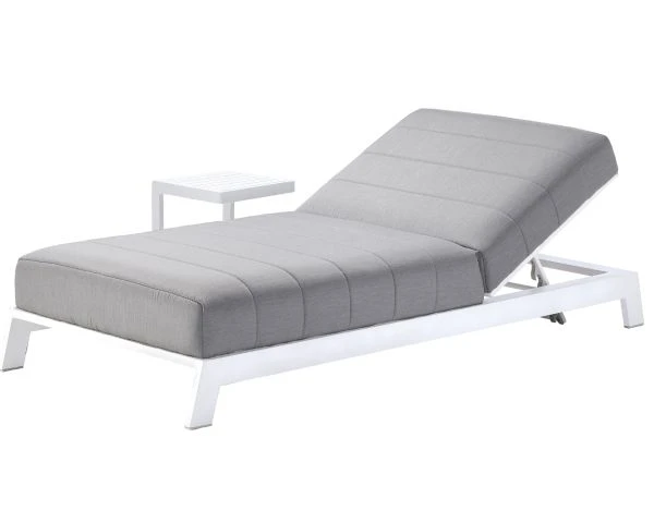 Envie d’apporter plus de confort à votre terrasse ? Découvrez sans tarder ce modèle de transat matelassé qui vous fera passer un agréable moment de détente. Ce bain de soleil une place de notre collection « Terrasse » est composé d’aluminium teinté blanc et de tissu Sunbrella® gris clair. Facile à entretenir, ce tissu est hydrofuge et résistant au ternissement dû à la lumière du soleil. Le tissu Sunbrella® est également respirant ce qui empêche la formation de condensation, permet un séchage très rapide, évitant la fixation des salissures, taches et moisissures.